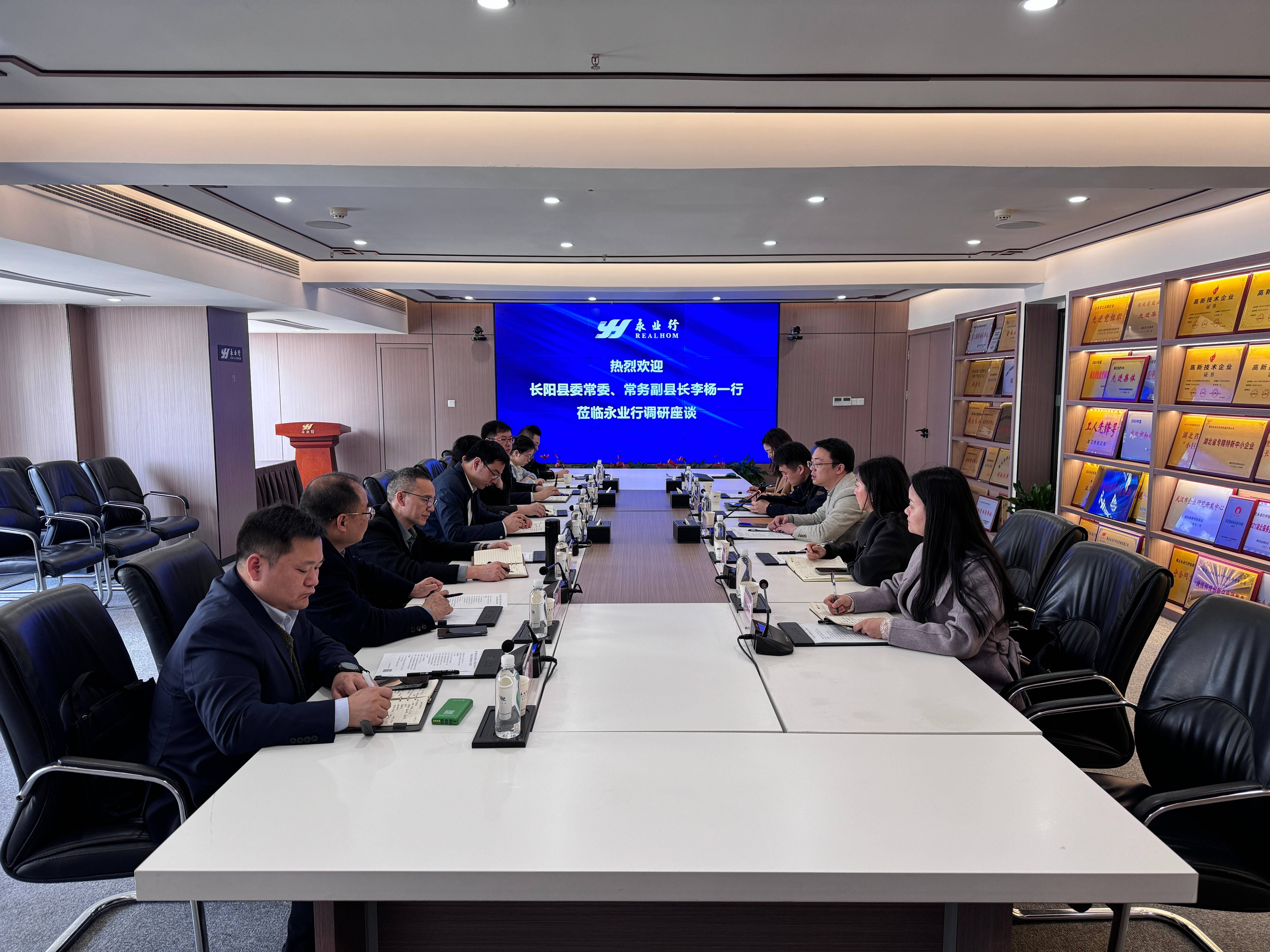 长阳土家族自治县委常委、常务副县长李杨一行莅临永业行调研 2025-03-20 2025年3月18日,长阳土家族自治县委常委、常务副县长李杨一行莅临永业行考察指导工作,就项目谋划、资金争取等工作进行调研。永业行高级副总裁文云波等热情接待并参加座谈交流。   李杨对永业行近年来服务长阳县投融资项目谋划、资金争取和项目融资等方面的工作成效给予了充分肯定。并围绕如何抢抓先机,加强对政策的精准理解,针对性地进行项目谋划,提高向上争取及谋划落地的能力等方面进行了深入讨论。希望双方能进一步加强合作,搭建常态化沟通平台,充分发挥永业行的专业优势,为长阳县域经济发展注入强劲动力。   文云波对李杨一行表示热烈欢迎,感 MORE