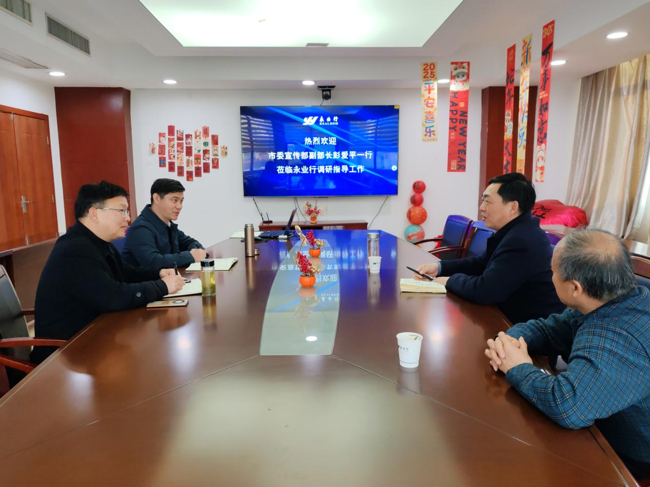 武昌区人大常委会副主任夏敬安一行莅临永业行调研指导工作 2025-02-26 2025年2月25日,武昌区人大常委会副主任夏敬安,武昌区人大财经委主任委员胡体宇,武昌区人大常委会预算工委主任倪方一行莅临永业行考察指导工作。永业行党委书记、董事长潘世炳,常务副总裁吴学锋,高级副总裁文云波等热情接待并参加座谈交流。 夏敬安对永业行长期以来深耕武昌、推动武昌经济发展做出的贡献表示感谢,对永业行高速发展、党建工作、专业能力、服务意识等方面表示高度赞赏。他表示,本次走访调研,加深了对永业行的发展历程、典型案例、科研成果、品牌实力等情况的了解,通过座谈“集中问诊”,感到受益匪浅。他强调了专业人做专业事的重要性,要求武昌区各部门主要领导后续要 MORE