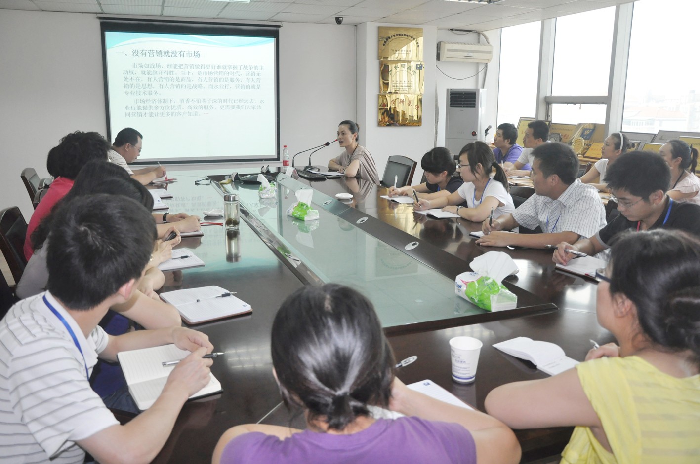 621日,助理总裁王琴在武汉总部会议室为大家上了一堂生动的市场营销课,来自武汉总部、各分部的50多名员工采取现场参与、通过电话会议系统学习等方式共同参加了培训。