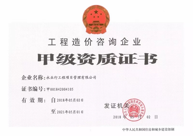 ,永业行正式取得工程造价咨询资质,进一步扩充了公司执业资质及业务范围。