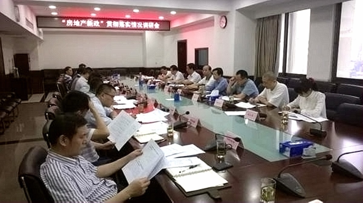 调研组与武汉市房管局、发改委、财政局、国土资源和规划局、地税局、人民银行武汉分行、公积金管理中心等相关领导进行了座谈交流。座谈会由武汉市房管局副局长阎磊主持,与会人员就个人住房信贷政策、房地产开发企业商业贷款及融资政策、房地产税收政策、住房公积金政策、棚户区改造和货币安置政策落实情况、住房租赁市场政策、优化住房及用地结构政策的落实情况等方面提出了各自见解。