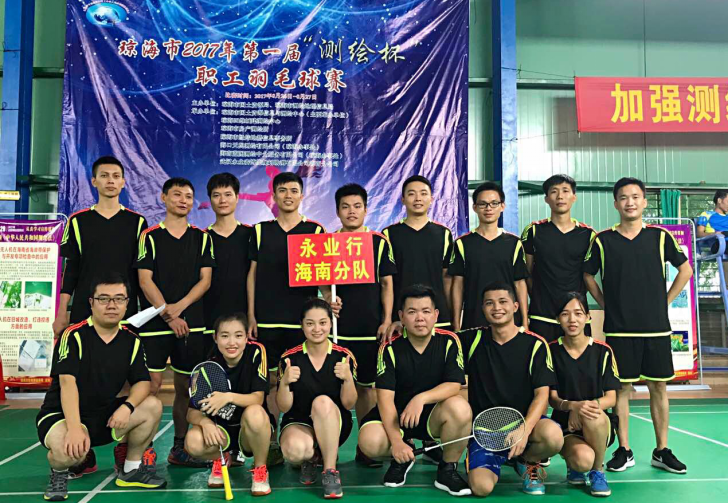 2017年8月26日,永业行海南分部组织18名员工参加了琼海市2017年第一届“测绘杯”职工羽毛球赛。本次比赛由琼海市国土资源局与市测绘地理信息局联合举办,来自市国土资源局测绘联队、市房产局测绘联队、市规建局测绘联队等7家单位的近150人参加比赛。