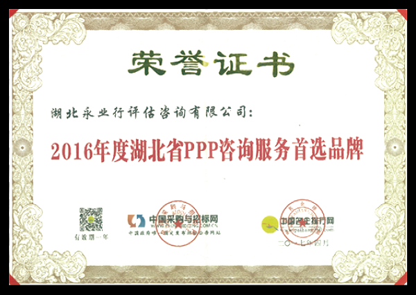 2016年度湖北省PPP咨询服务首选品牌