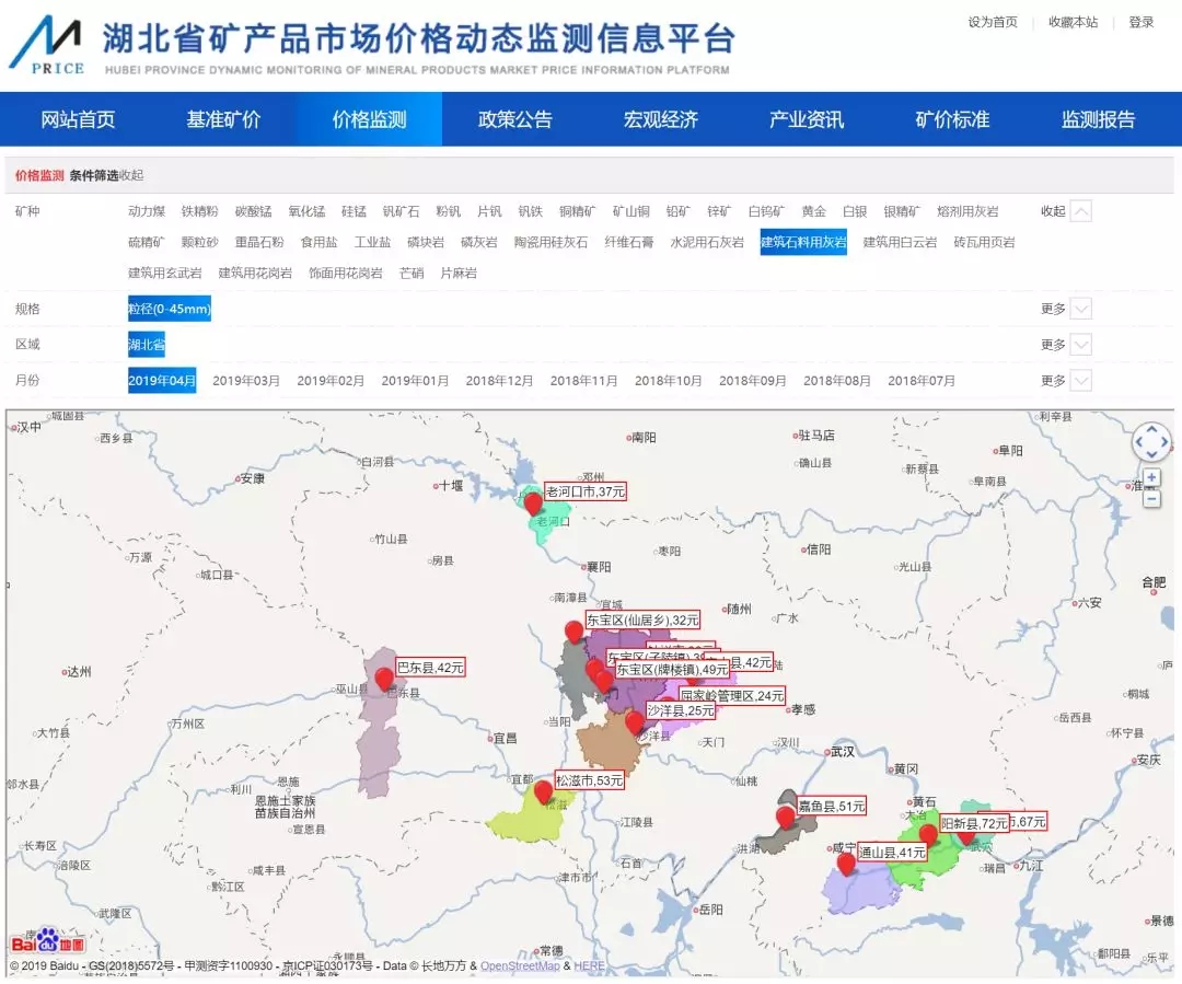 3、监测资源重点县(市、区)区域覆盖率达到62。7%,矿种覆盖率达到83%,交易覆盖率达到92%;共计发布了71期湖北省矿产品市场价格监测成果