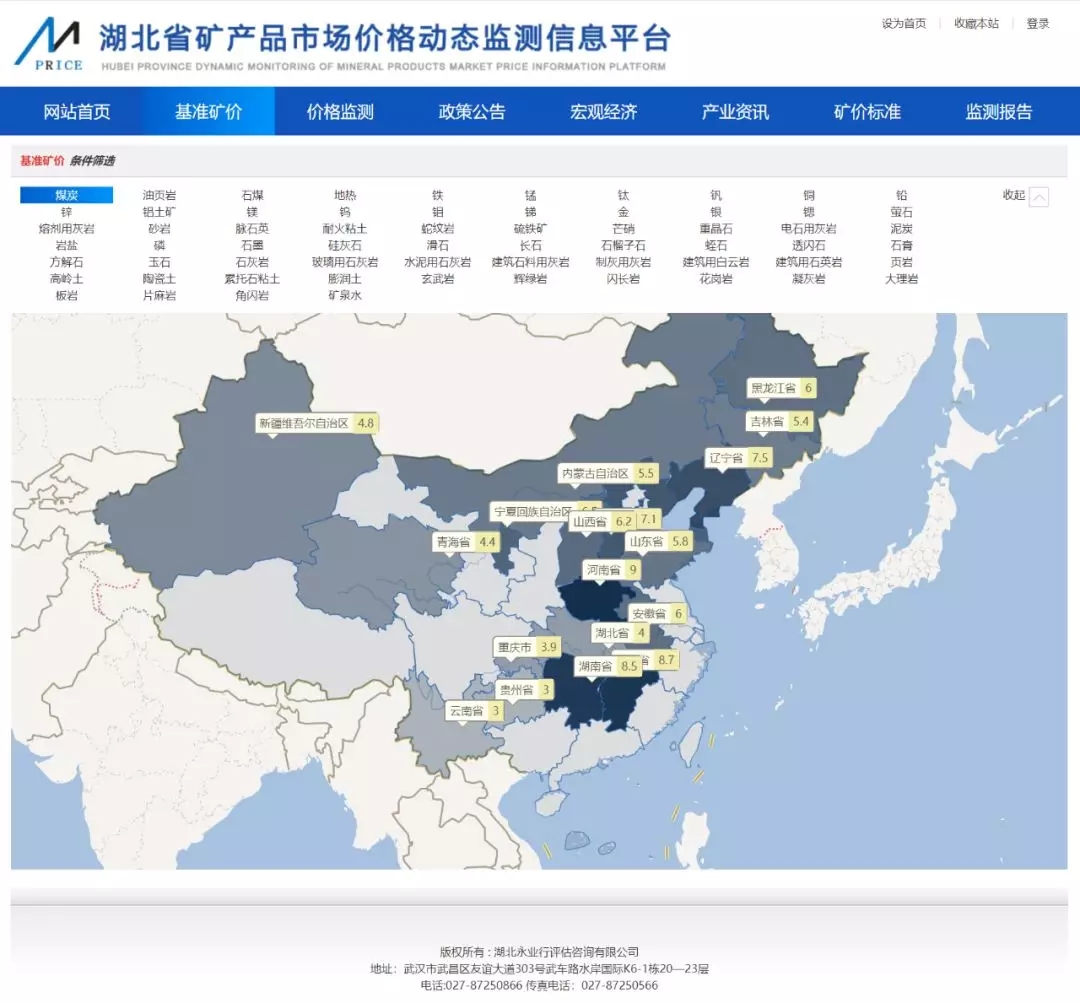 以永业行为技术支撑单位的湖北省矿产品价格监测工作,源起于2013年湖北省矿产资源补偿费网上征收管理改革,服务于矿产资源补偿费阳光征管和矿业权评估报告质量监管的需求。随着新常态下的矿政管理改革的不断深入,以及大数据技术的兴起,现已逐步发展为兼具各省特色的“互联网+”管理创新形式,实现了5个首个的全国定位。