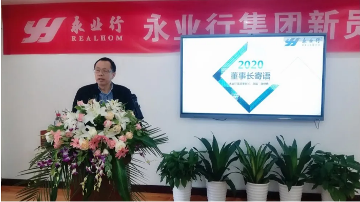 公司董事长、总裁潘世炳先生出席本次集训开营仪式,潘总首先代表公司欢迎新员工们加入永业行大家庭,并从专业驱动、敬畏市场、诚信和感恩四个方面提出明确要求。