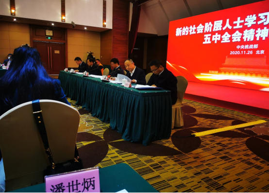 座谈会上,与会人员深入学习了党的十九届五中全会精神,八位新的社会阶层代表人士畅谈思想体会,针对如何充分发挥新的社会阶层人士的优势作用,在实施“十四五”规划、实现2035年远景目标和建设社会主义现代化国家新征程中贡献力量提出了思路和建议。