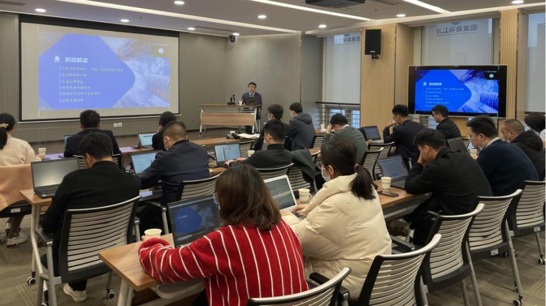 长江环保集团湖北区域公司副总经理蔡意、总经理助理孙小琴、市场开发部相关领导等50余人线上线下参加了本次培训。