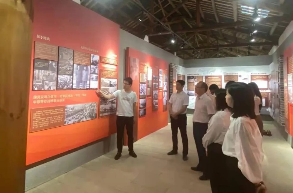 在孝昌县王店镇磨山村,大家参观中原突围纪念馆,了解革命战争时期刘邓大军和李先念曾在磨山留下的光辉历程;徒步登山栈道,重走革命道路;游览磨山村,体验当地脱贫成果,感受新农村建设。参观完毕后,大家在中原突围第一枪纪念广场合影留念。