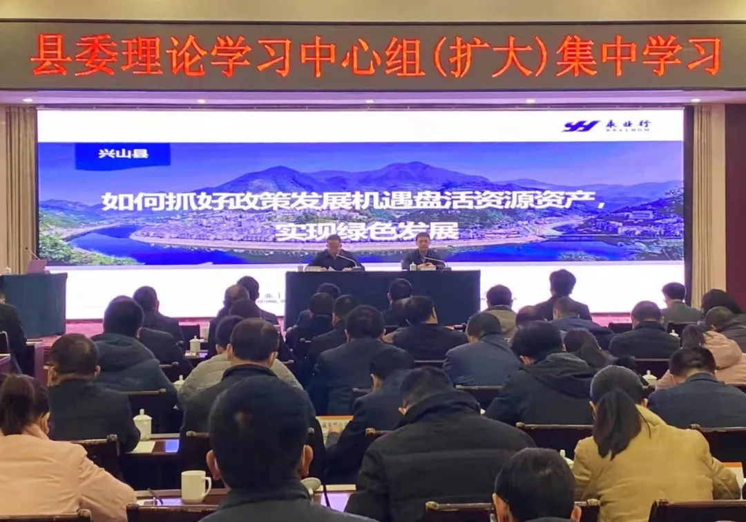 2021年12月24日,应中共兴山县委邀请,永业行副总裁文云波在县委理论学习中心组会上,以《如何抓好政策发展机遇,盘活资产资源,实现绿色发展》为题作“十四五”发展思路培训交流。兴山县委书记曹宏伟主持学习。