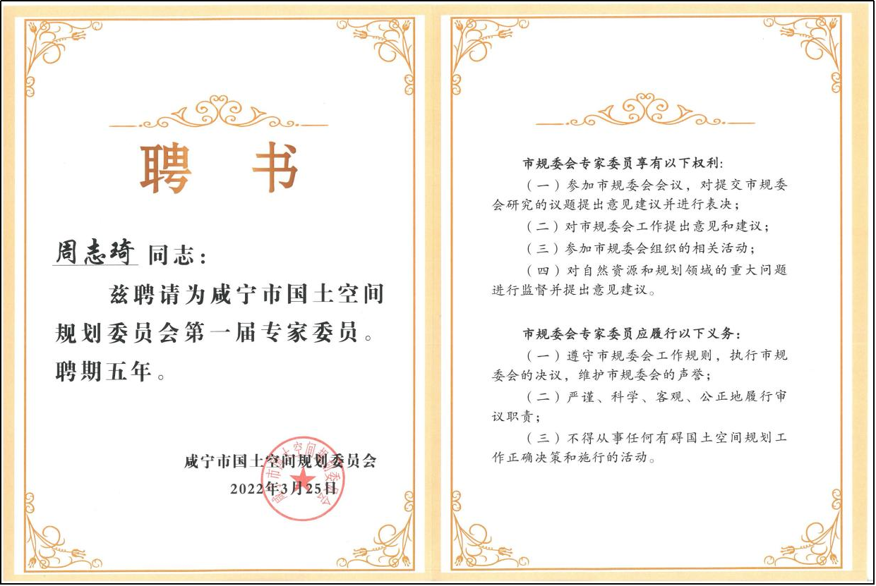 永业行周志琦受聘咸宁市第一届国土空间规划委员会专家委员