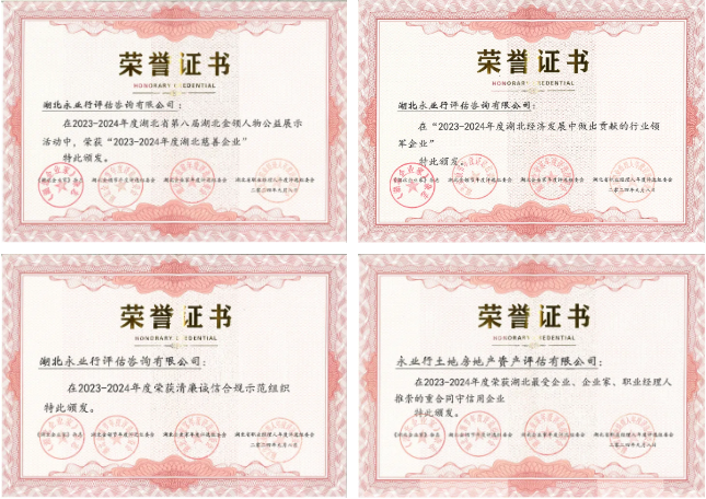 永业行荣获2023-2024年度湖北慈善企业、2023-2024年度行业领军企业、2023-2024年度清廉诚信合规示范组织、2023-2024年度最受企业、企业家、职业经理人推崇的重合同守信用企业等多项荣誉。