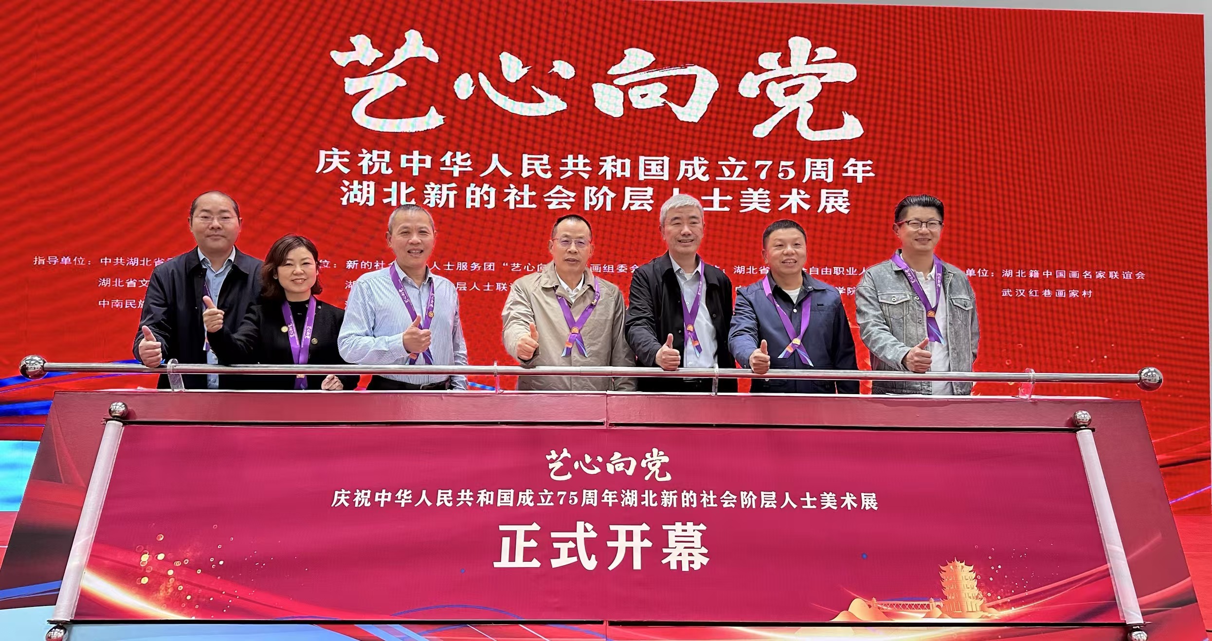 2024年10月21日,湖北省新的社会阶层人士联谊会联合湖北省美术家协会共同举办的“艺心向党”——庆祝中华人民共和国成立75周年湖北新的社会阶层人士美术展开幕式,在中南民族大学美术馆举行。中央统战部六局二处处长李胜出席活动。“艺心向党”全国书画组委会秘书长赵锁平,中共湖北省委统战部副部长(正厅级)张勇强,湖北省文学艺术界联合会党组成员、副主席王永平,中南民族大学党委副书记、副校长宋发军出席活动并讲话。省新联会会长石文先主持活动。省新联会副会长、评估师分会会长、永业行董事长潘世炳,省新联会评估师分会秘书长、永业行常务副总裁吴学锋受邀参加活动。