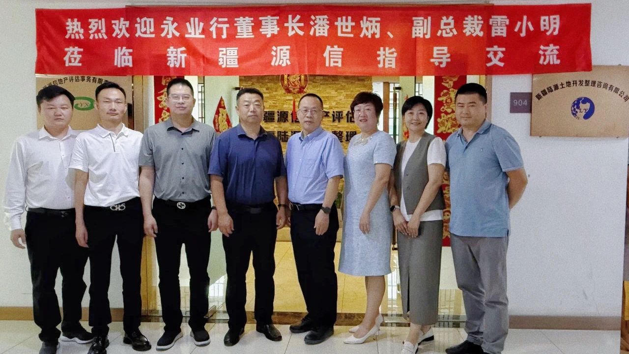 7月25日,中国土地估价师与土地登记代理人协会副会长、永业行董事长潘世炳,副总裁雷小明一行赴新疆源信地产评估事务有限责任公司(以下简称“新疆源信”)开展结对互助交流。新疆维吾尔自治区土地估价师协会会长严冬、协会秘书长杨永刚、办公室主任路景娜,新疆源信总经理邱娜热情接待并参加座谈。