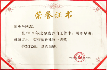 2020年7月,中共湖北省政府机关党组印发《关于表彰2019年度先进参事和参事工作单项奖获奖参事的通报》,省政府参事、永业行董事长潘世炳荣获先进参事、参政建议一等奖。